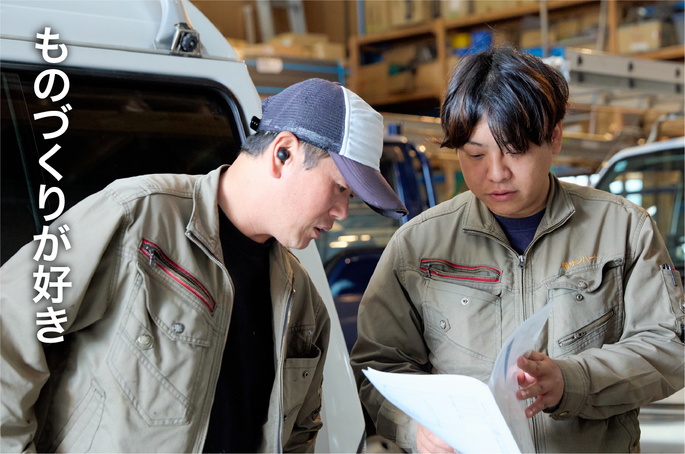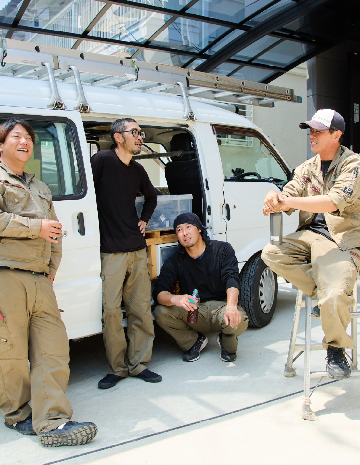 いい人ばっかりだから、楽しいですよ。みんな基本的にはネアカなんじゃないでしょうか。入社したばかりのときは、未経験だと知識も技術もないと思いますが、できるところから手伝ってもらいつつ、できることを増やしてもらったり。移動中や休憩中は冗談なども言い合える関係で、年齢関係なく、みんな話しやすいですね。