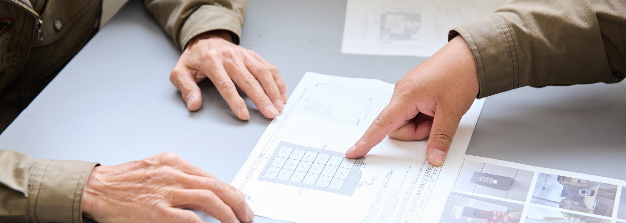 太陽光発電の場合は、パネル設置場所のレイアウトを確認し、寸法を測り、住居とメーカーごとの機器の仕様に合わせた施工方法を検討します。